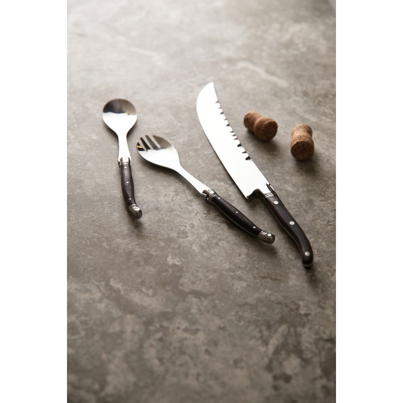 Couverts à salades de haute qualité dans un style bistro français typique. Manche en pakkawood noir et lame en acier inoxydable de haute qualité. Emballés dans une boîte cadeau exclusive.