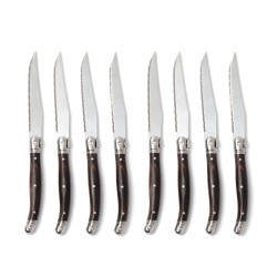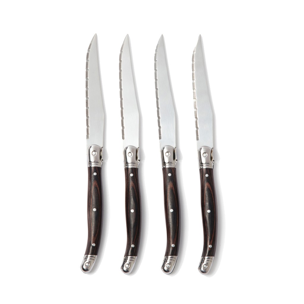 Couteaux à viande de haute qualité dans un style bistro typique d'inspiration française. Manche en pakkawood noir et lames en acier inoxydable de haute qualité. La lame est dotée d'une râpe fine qui vous permet de couper les aliments avec le moins de résistance possible. Un ensemble de quatre couteaux que vous pouvez facilement assortir à vos fourchettes à la maison. Emballé dans une boîte cadeau exclusive.