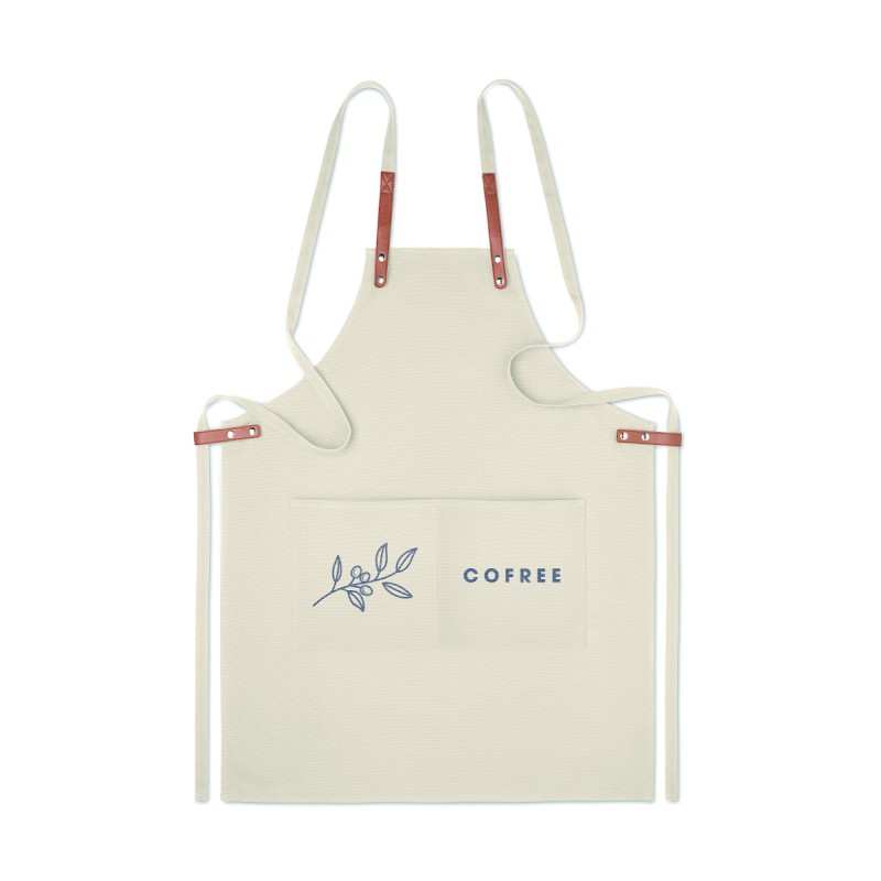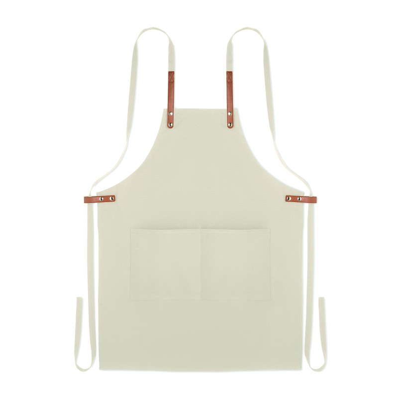Tablier de cuisine réglable avec 2 poches frontales en coton/toile organique de 340 gr/m².