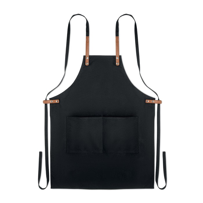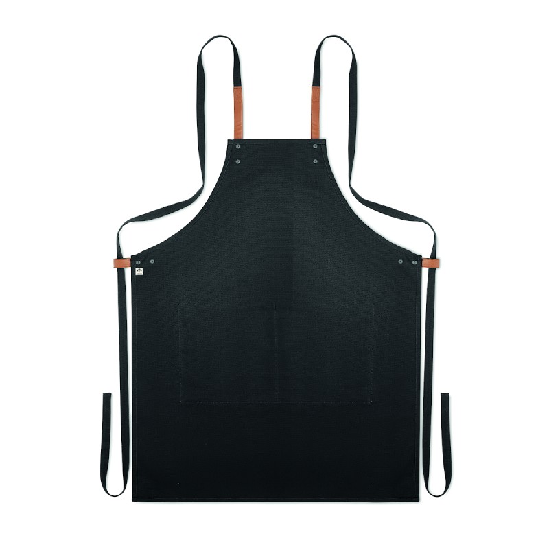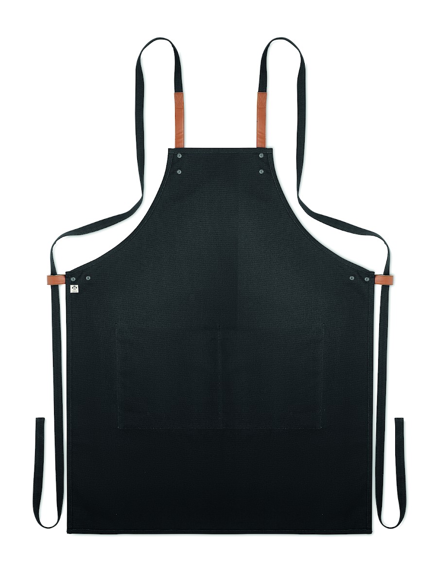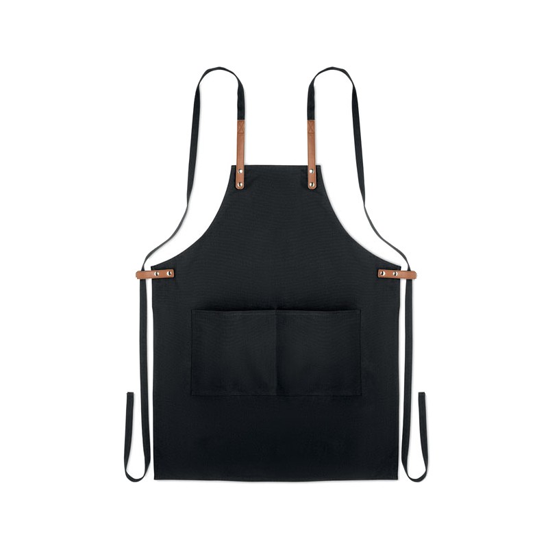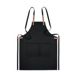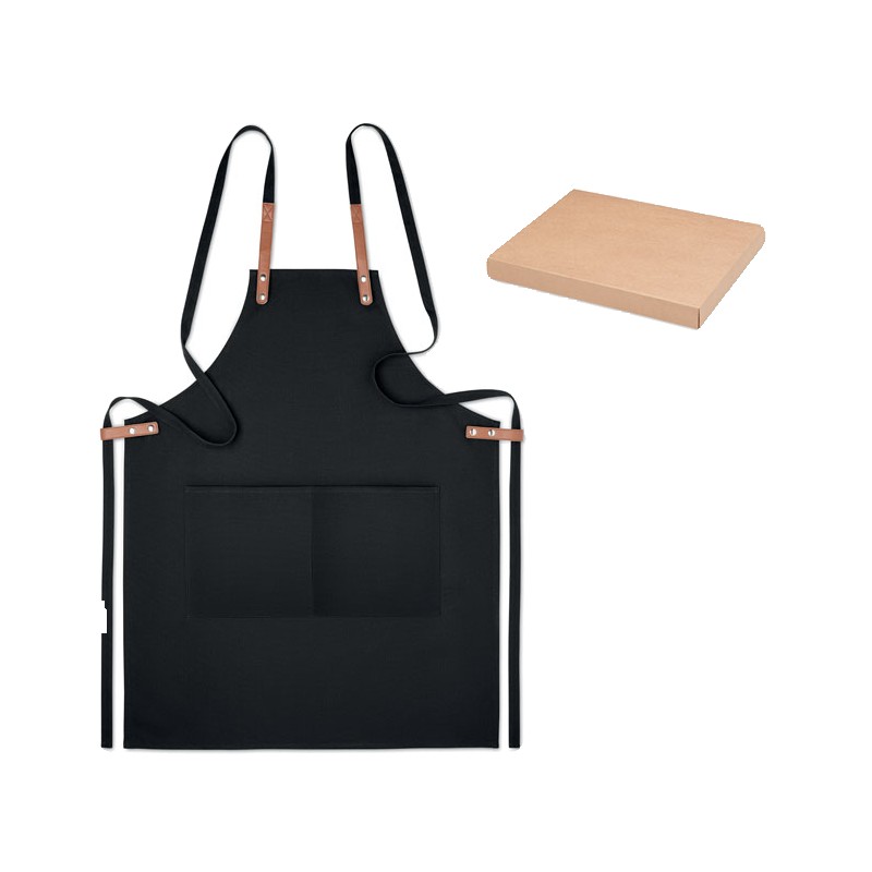 Tablier de cuisine réglable avec 2 poches frontales en coton/toile organique de 340 gr/m². Présenté dans une boîte individuelle.