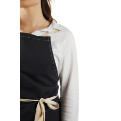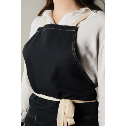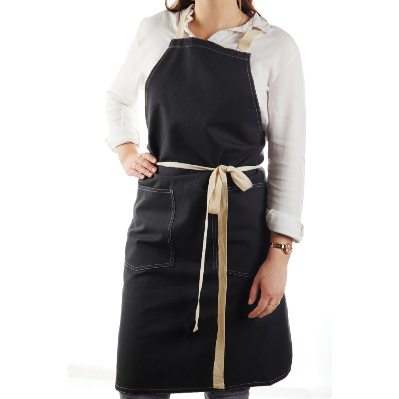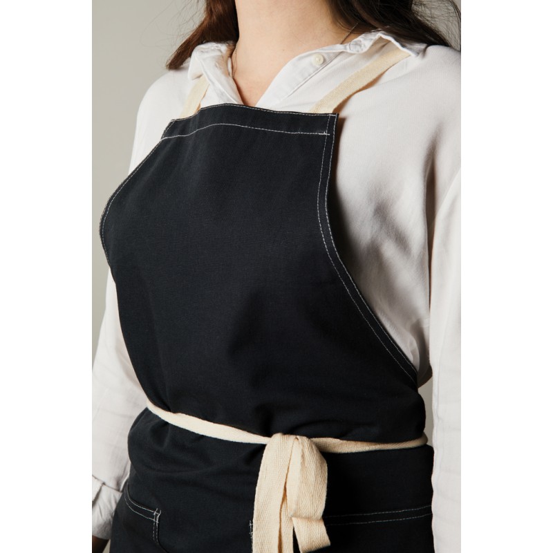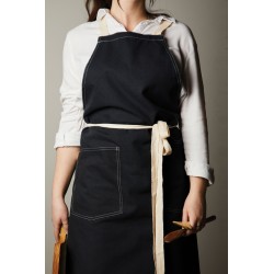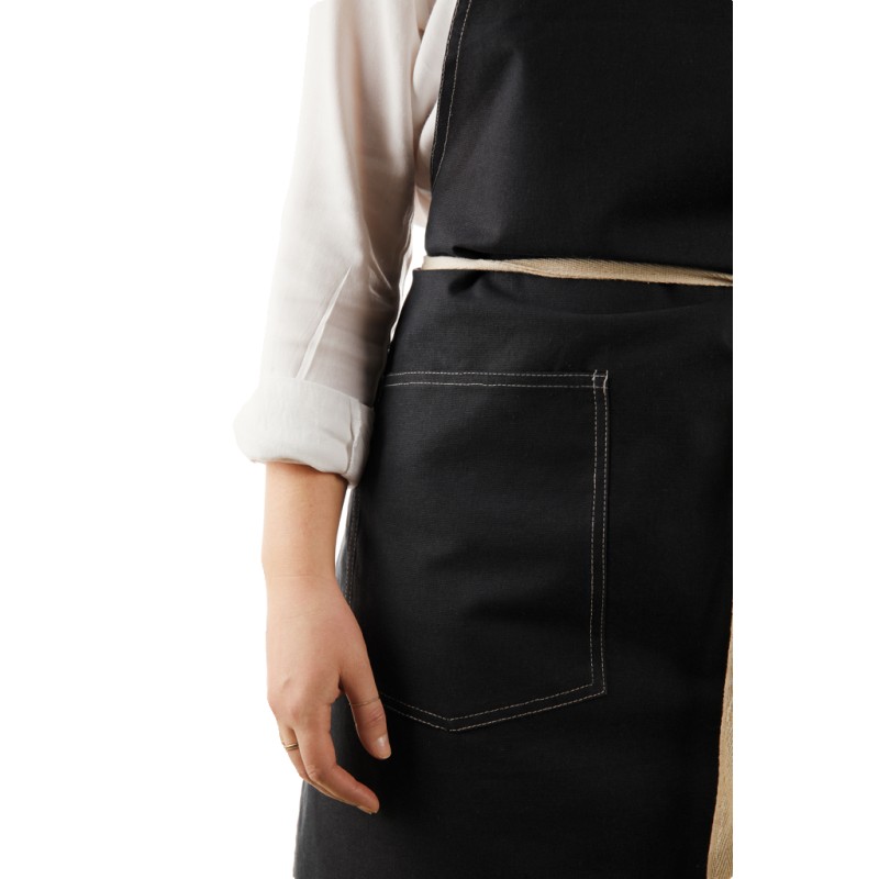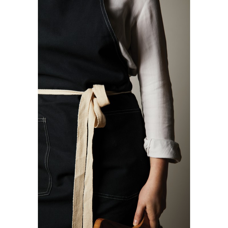 Tablier fabriqué à partir de 70% de coton recyclé certifié provenant des déchets de coton des fournisseurs. Des fibres habituellement considérées comme inutilisables ont, grâce à un processus de fabrication approprié, atteint les propriétés souhaitées. Ce tablier est extra large pour offrir une protection maximale. Deux grandes poches frontales et une boucle pour suspendre des ustensiles ou un torchon.