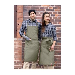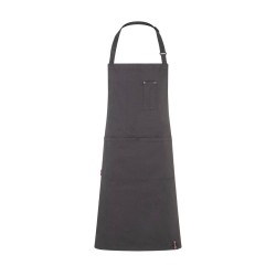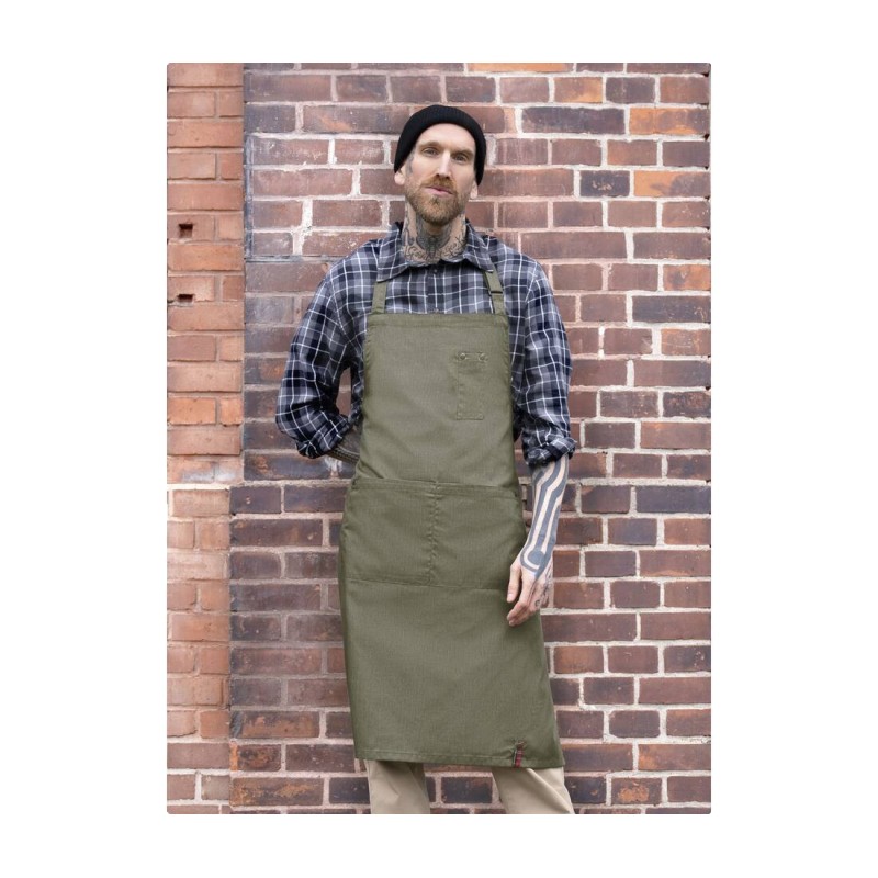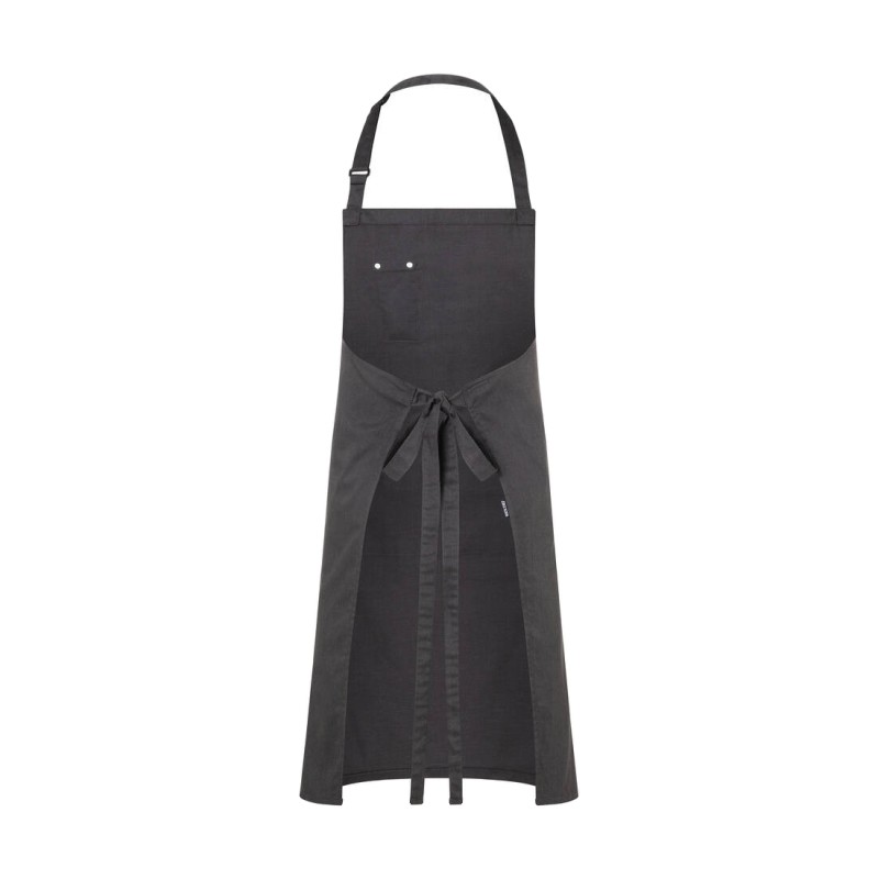 Rivets en relief Rock Chef® sur la poitrine et les poches avant. Sangle réglable avec boucle. 2 grandes poches avant. Poche poitrine élégante. Dimensions : 75x90cm.