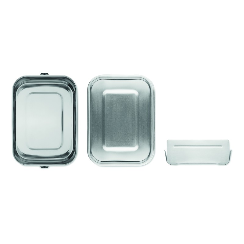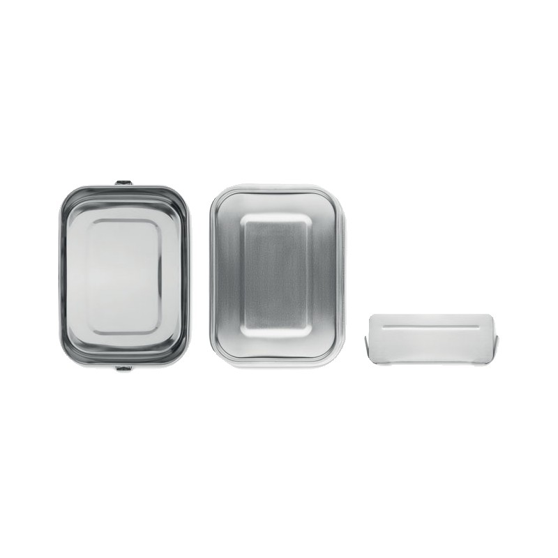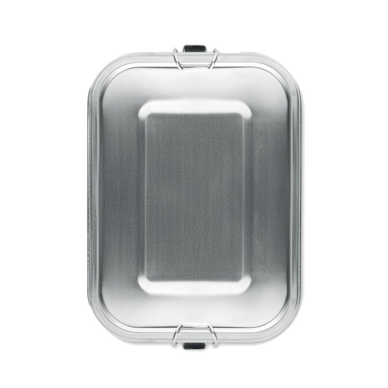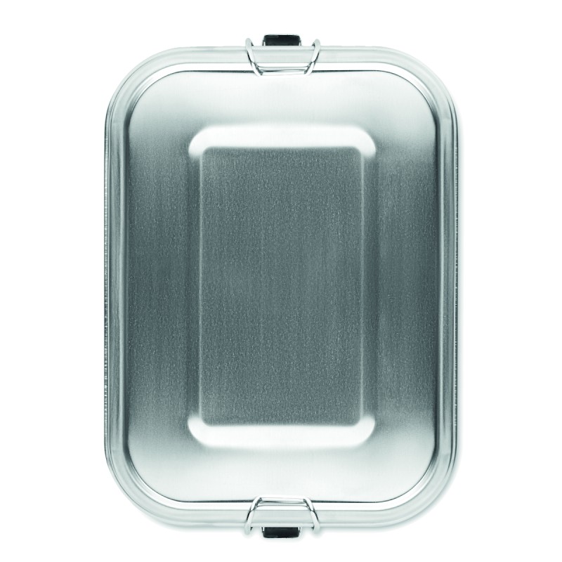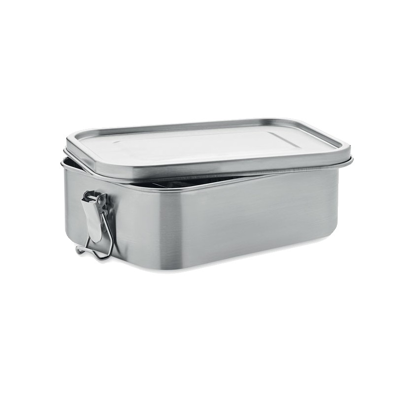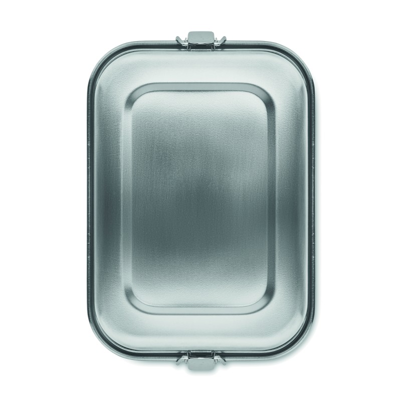 Boîte à lunch en acier inoxydable avec boucles latérales solides et sûres. Comprend un séparateur intérieur. Capacité : 1200 ml.