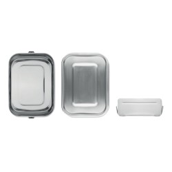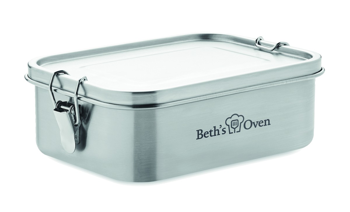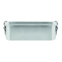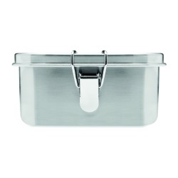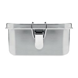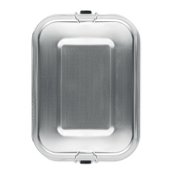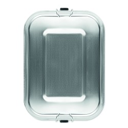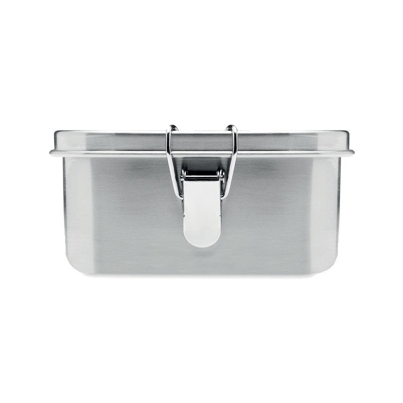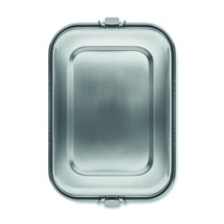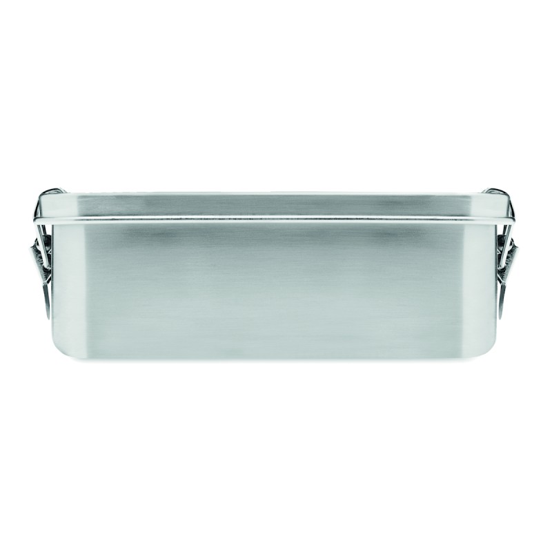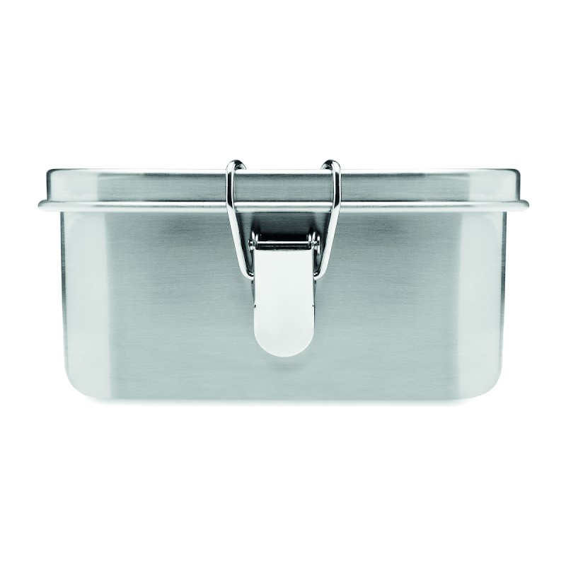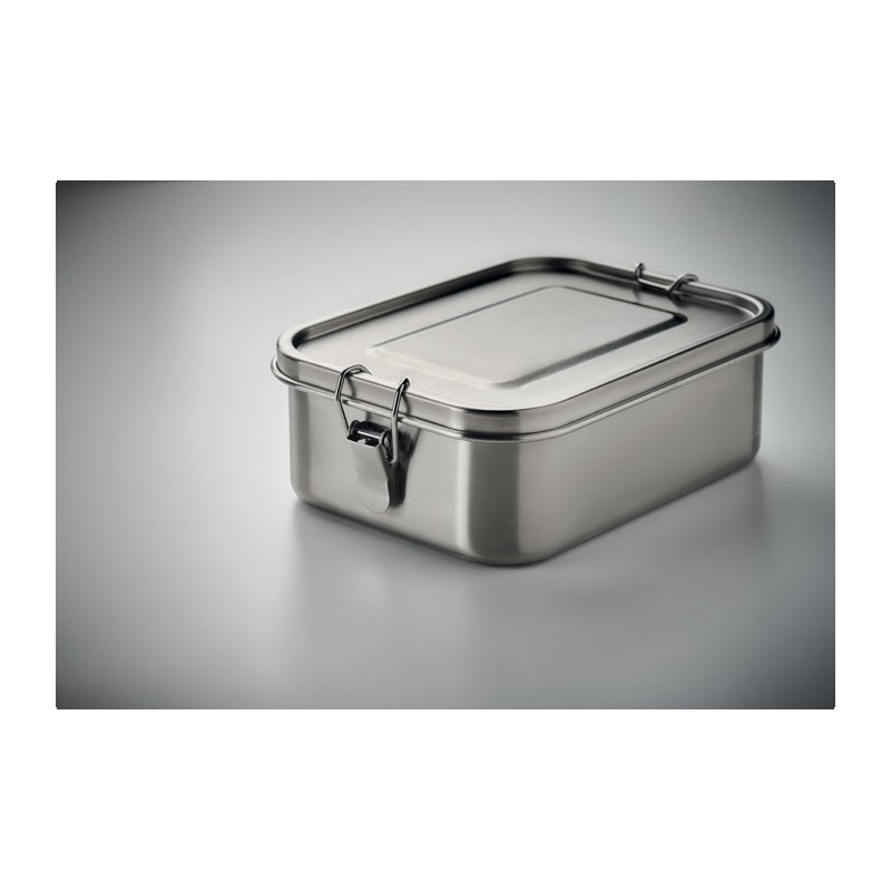 Boîte à lunch en acier inoxydable avec boucles latérales solides et sûres. Comprend un séparateur intérieur. Capacité : 1200 ml.