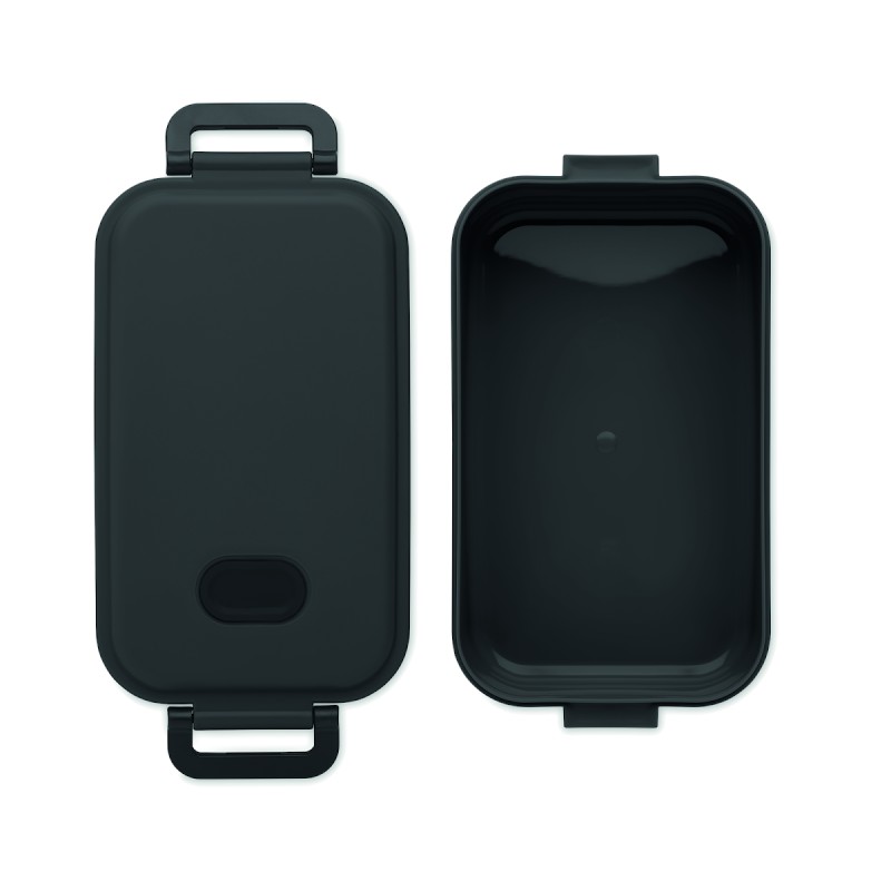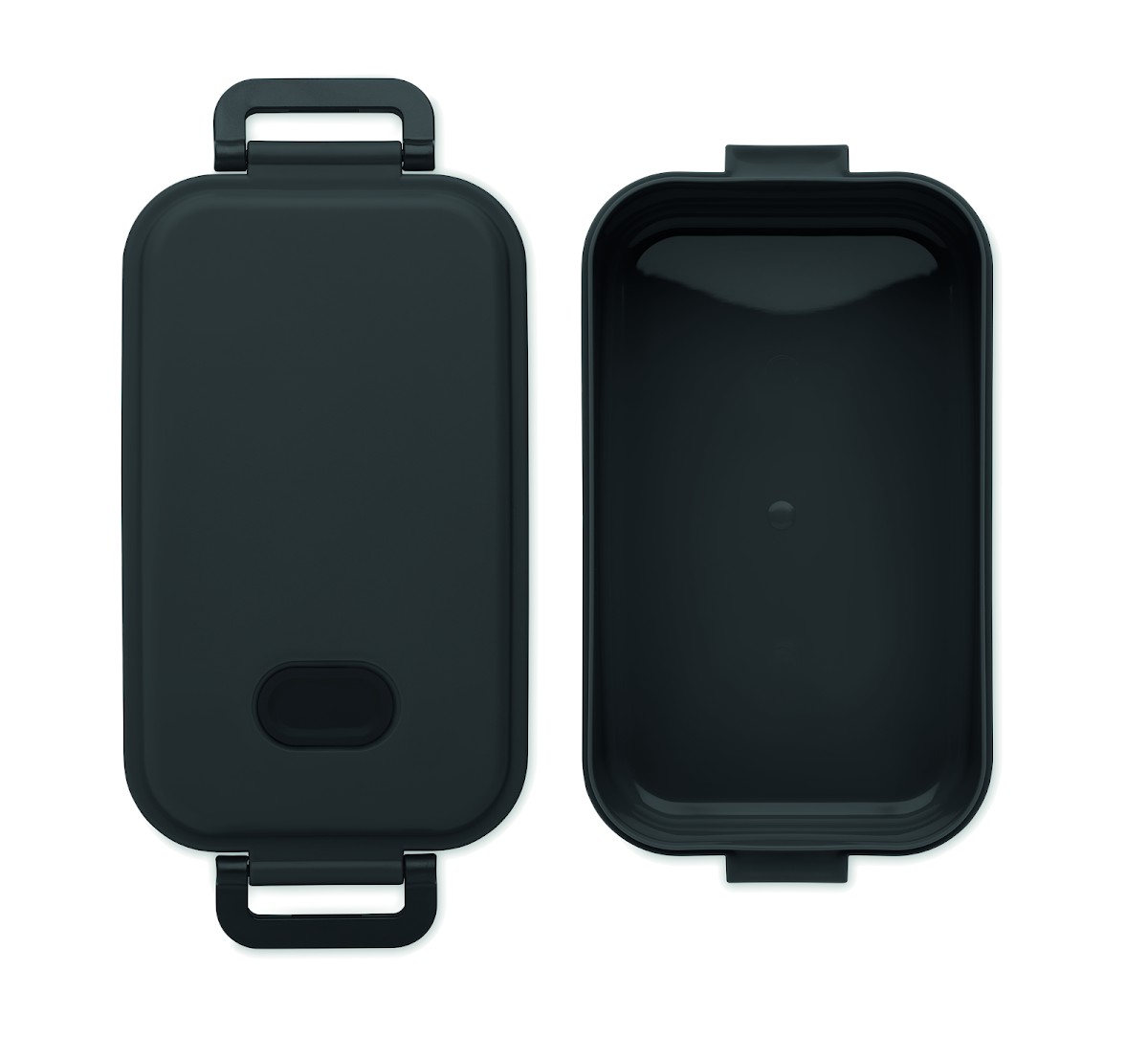 Boîte à lunch en PP avec couvercle hermétique, valve en silicone et deux boucles latérales. Capacité : 800 ml.