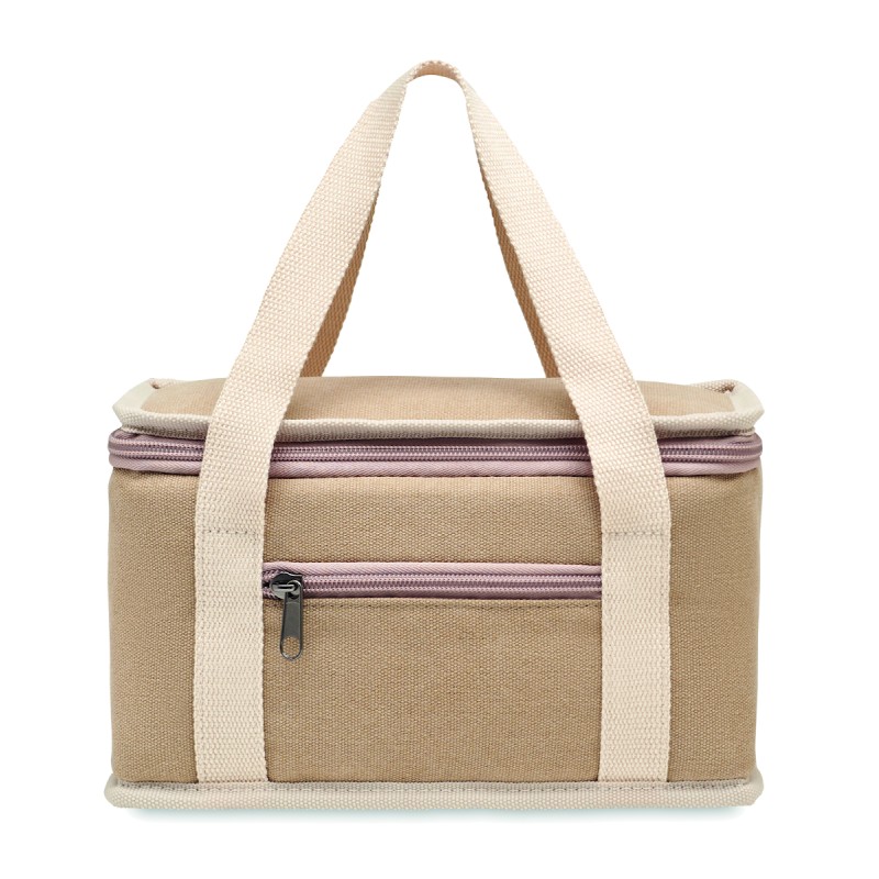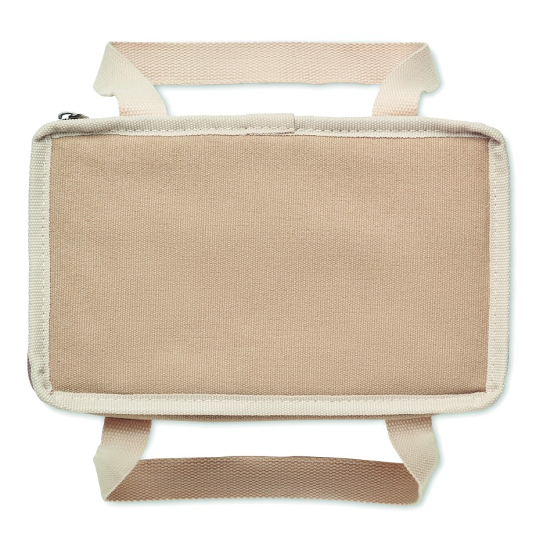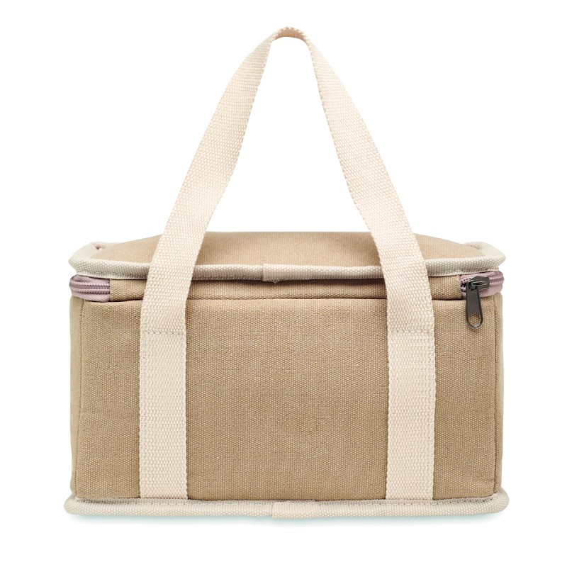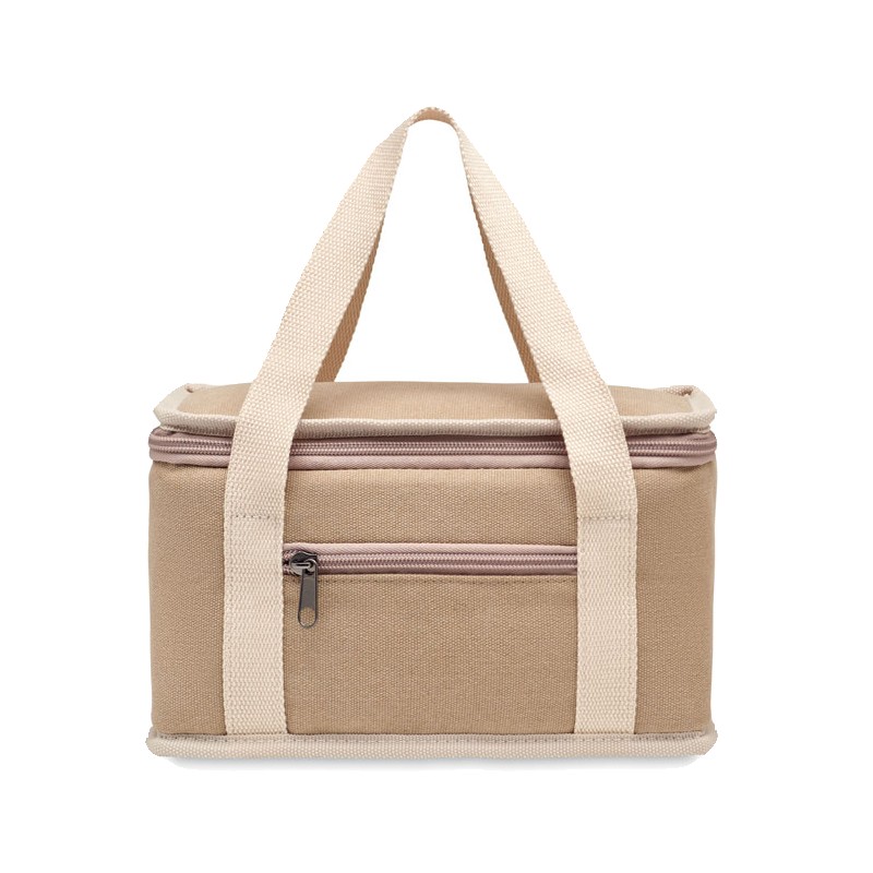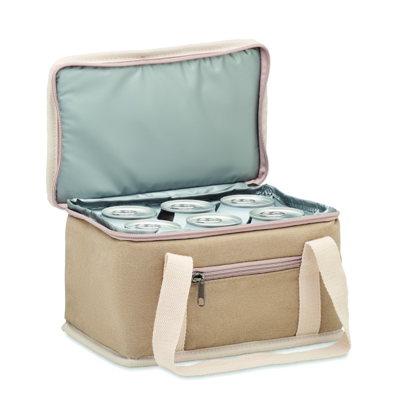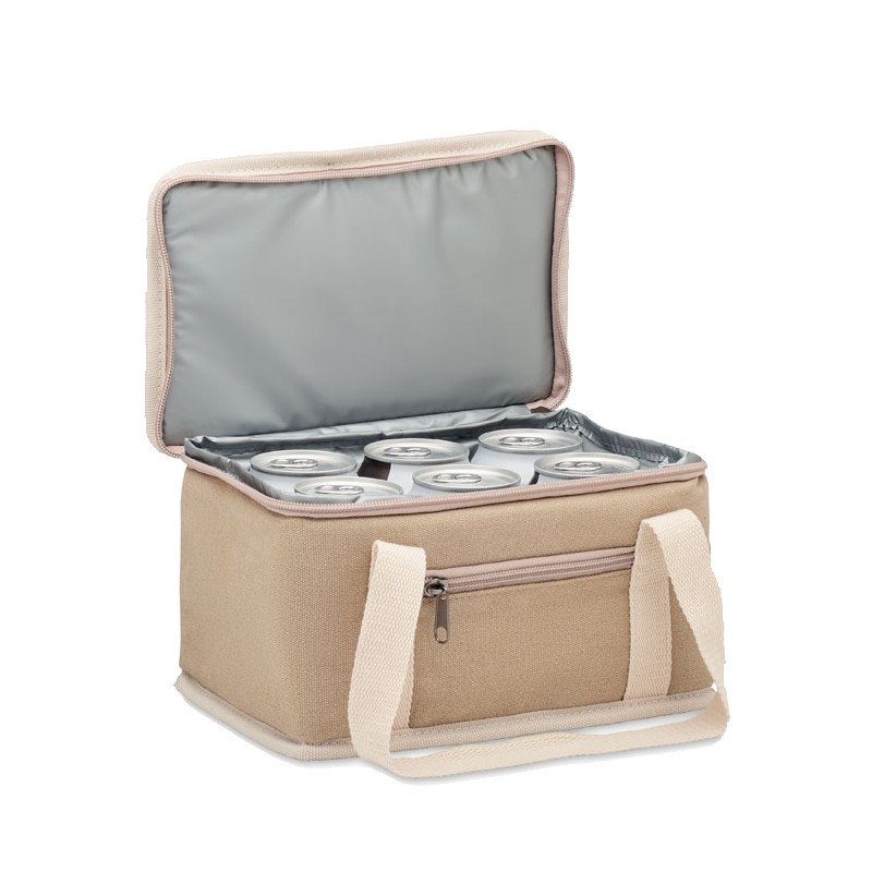 Sac isotherme 6 canettes en toile lavée avec sangle en coton. 320 gr/m². Isolation : 15C PEVA avec 6mm de mousse PE.