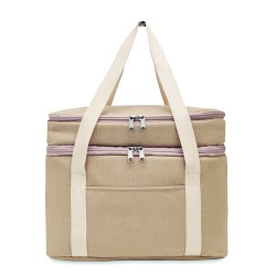 Sac isotherme avec 2 compartiments en toile lavée avec sangle en coton. 320 gr/m². Isolation : PEVA 15C avec mousse PE 6mm.