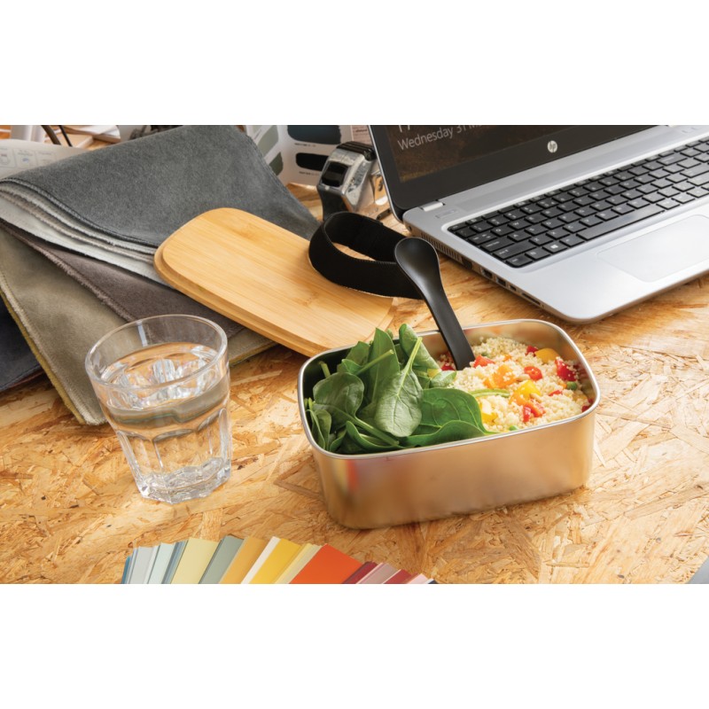 Boîte à Lunch en acier avec couvercle en bambou et cuichette
