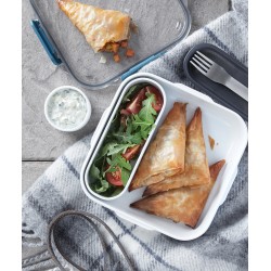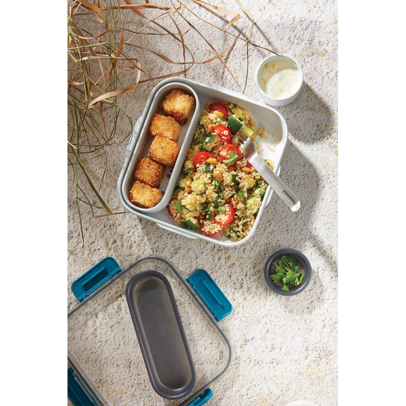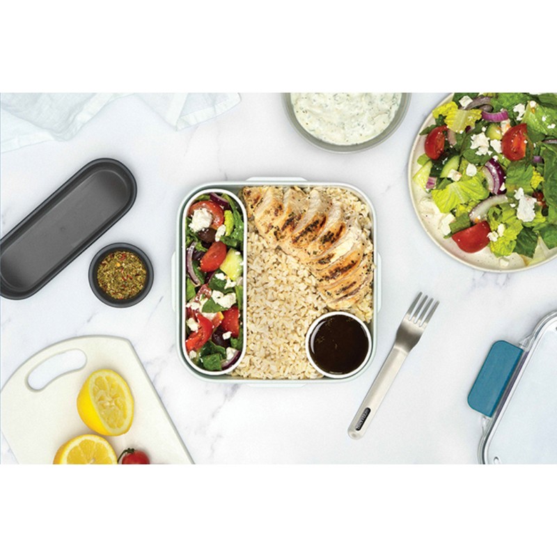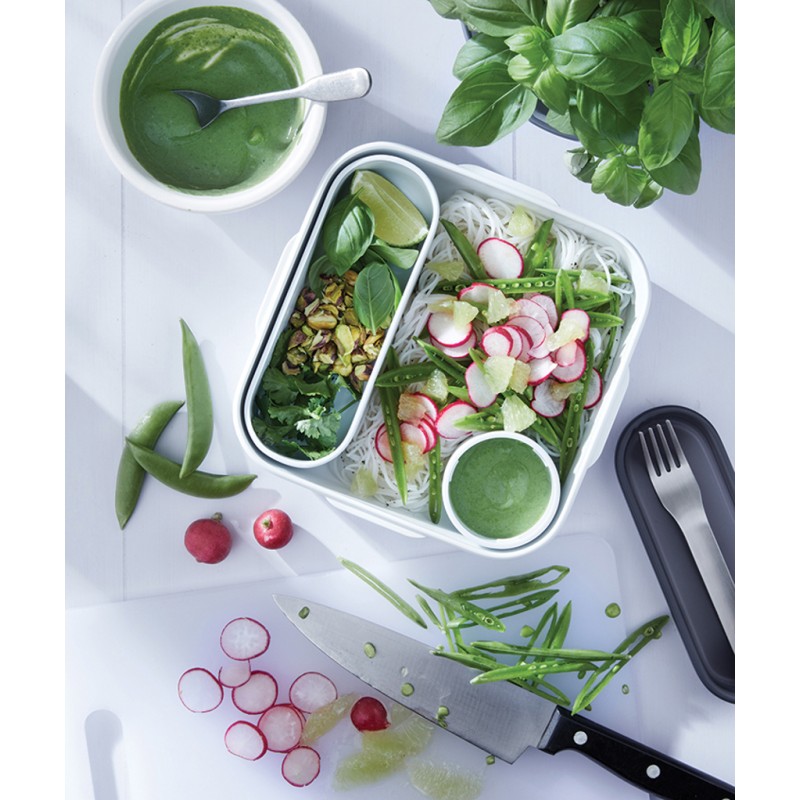 Inspirée du tout premier design de boîte à lunch de Black+Blum. Conçue pour ressembler à un bol en céramique, la Lunch Box Original comprend un récipient intérieur ainsi qu'un pot à sauce étanche avec une zone de garniture dans le couvercle, et une fourchette en acier inoxydable. Passe au micro-ondes et au lave-vaisselle, à l'exception du couvercle en tritan.