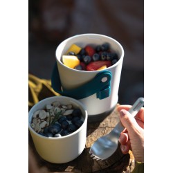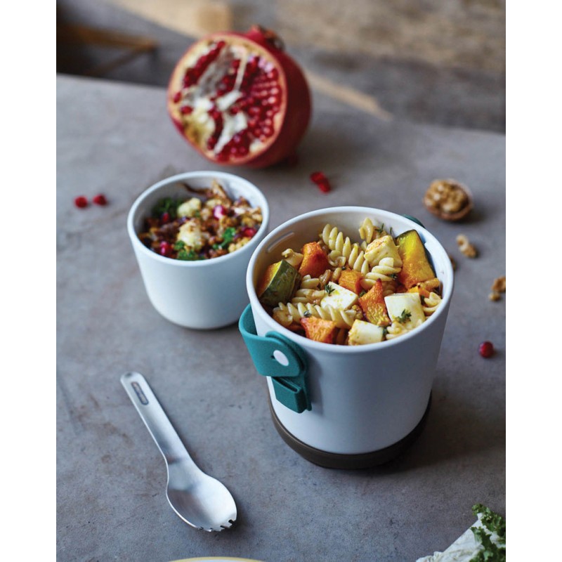 Inspiré des porte-tiffins indiens, cette boite à lunch est plus fin et plus haut, ce qui le rend compact et facile à mettre dans votre sac. Le conteneur à lunch Original se compose de deux pots étanches qui peuvent être verrouillés l'un à l'autre pour le transport. Les pots sont dotés d'une sangle de transport pratique en silicone qui maintient également la "spork" (cuillère et fourchette) en acier inoxydable. Séparez tout ce que vous voulez, du yaourt aux fruits en passant par les nouilles et la soupe. Lorsque vous avez terminé, le plus petit pot s'insère dans le plus grand pour un rangement facile. Passe au micro-ondes et au lave-vaisselle, à l'exception du couvercle en tritan.