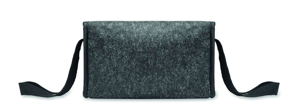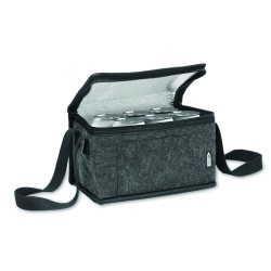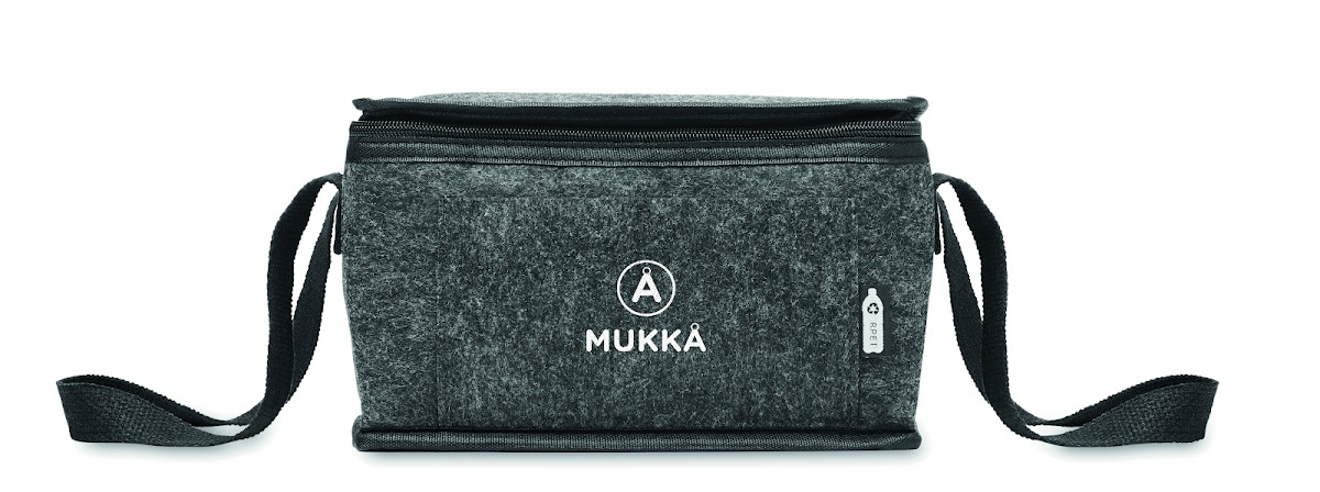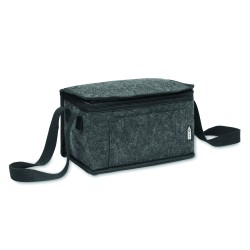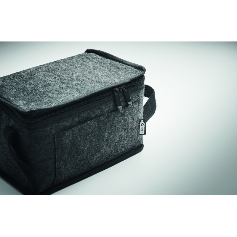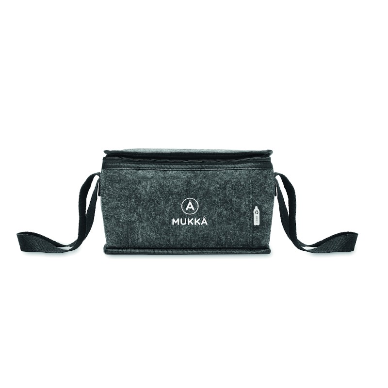 Sac isotherme en feutre RPET avec poche frontale. Feutre RPET de 1 mm d'épaisseur et feuille d'aluminium laminée de 3 mm d'épaisseur. Capacité : 5 L.