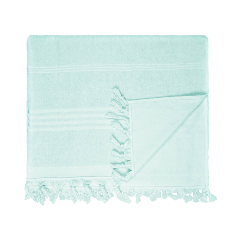 1 côté éponge. Lavable jusqu'à 30°. Franges sur les côtés.