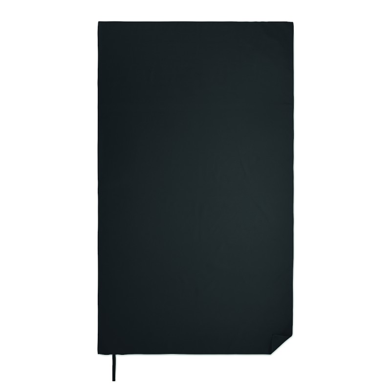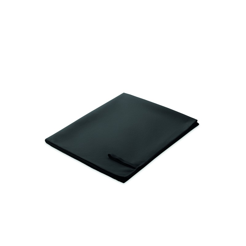 Serviette en microfibre composée de 90 % de polyester et de 10 % de polyamide, avec boucle de suspension élastique. Légère et à séchage rapide. Taille 70x120 cm.
