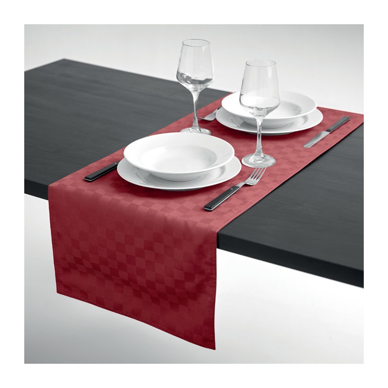Chemin de table en polyester 185 gr/m² avec microfibre et doublure en non-tissé avec finition déperlante sur la face avant. Dimensions : 1,40x0,40 m : 1,40x0,40 m.