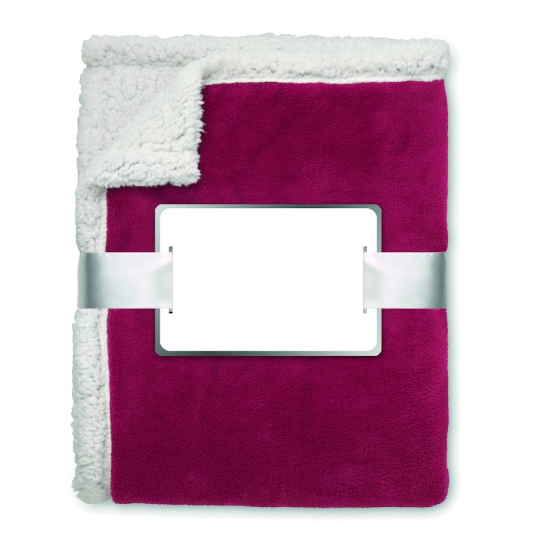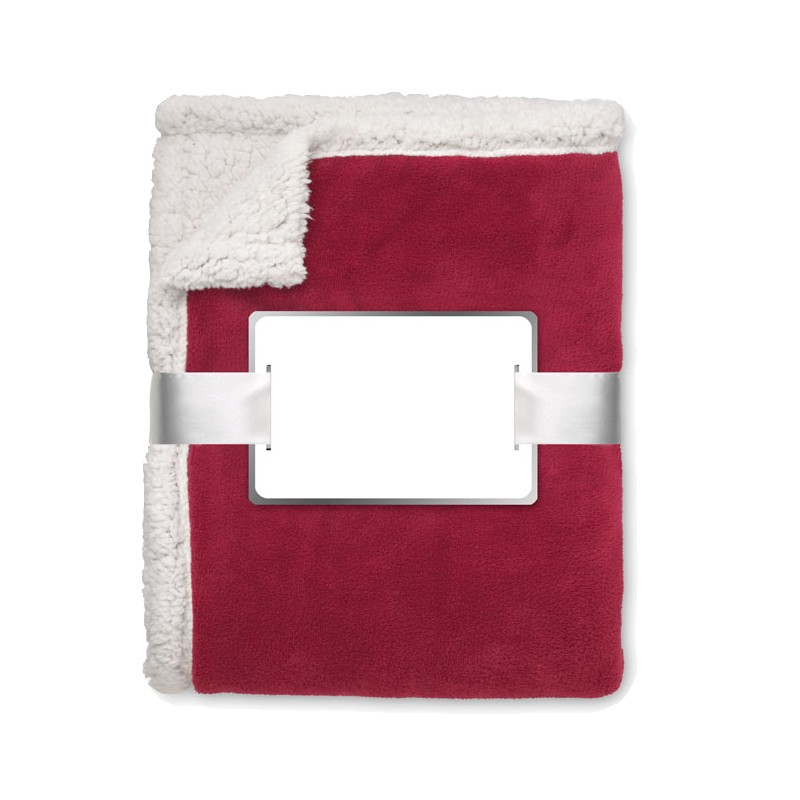 Couverture en polaire de 200 gr/m² avec doublure en polyester sherpa de 220 gr/m². Enveloppée dans un ruban et carte imprimable.