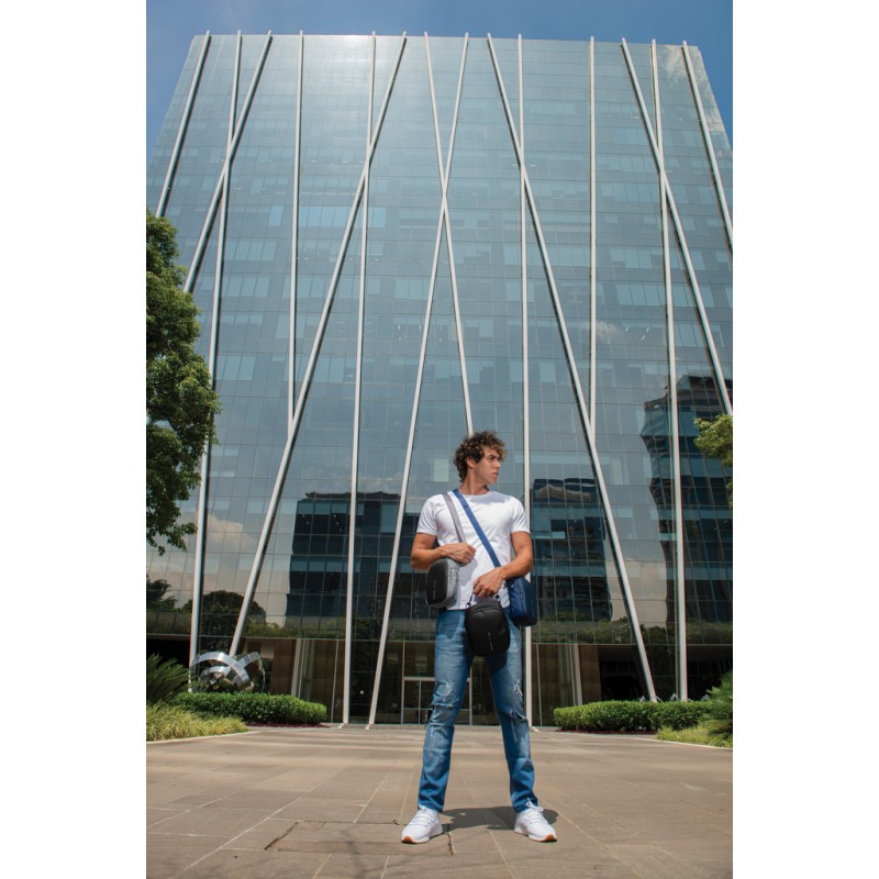 Le Boxy Sling est un sac polyvalent à bandoulière, conçu pour transporter les objets essentiels de tous les jours. Le sac peut être porté autour du cou, sur l'épaule ou autour de la taille. Il a une capacité suffisante pour contenir un téléphone portable, un portefeuille ou un porte-monnaie, un passeport, un carnet de notes et divers autres petits objets. La poche arrière cachée est idéale pour ranger discrètement de l'argent, des cartes ou d'autres objets de valeur. Le Boxy Sling dispose d'une poche cachée pour bouteille d'eau, qui peut être rangée lorsqu'elle n'est pas utilisée. Il est fabriqué à partir de matériaux recyclés. Avec le traceur AWARE™ qui valide l'utilisation authentique de matériaux recyclés. 27% de contenu recyclé.