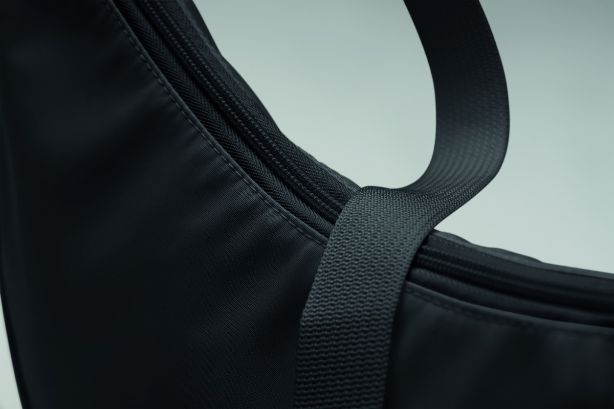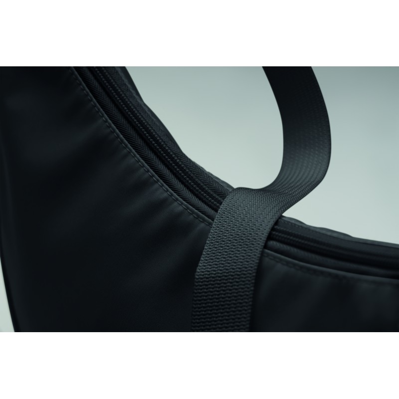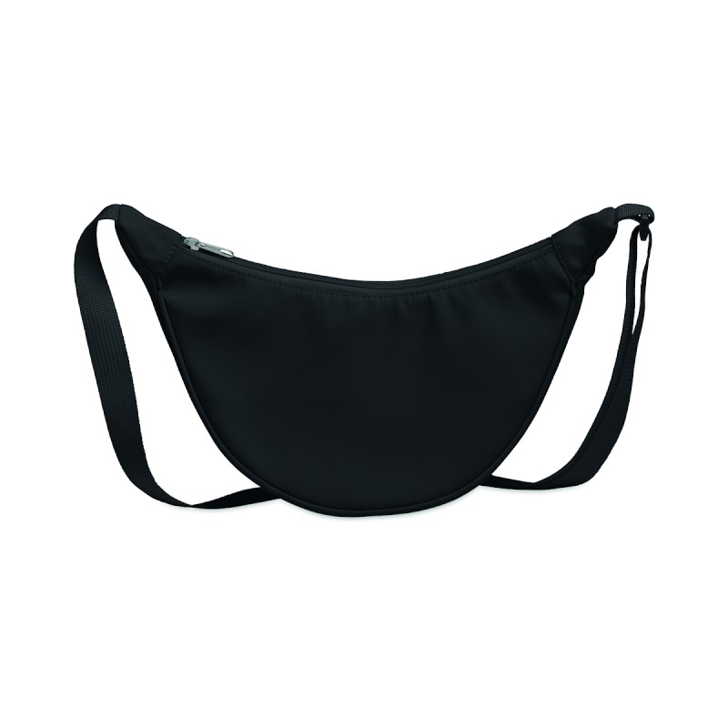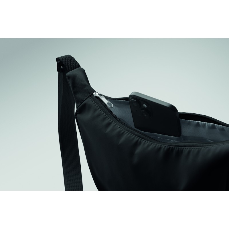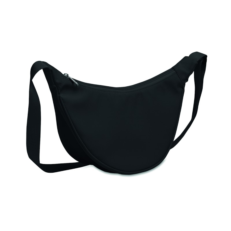 Sac cross body en forme de demi-lune en oxford 400D et doublure en RPET 210D. Une poche principale zippée et 2 poches intérieures.