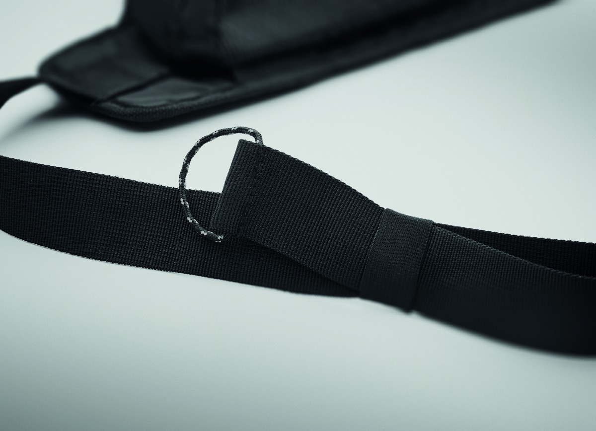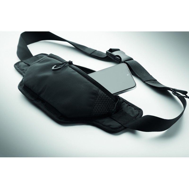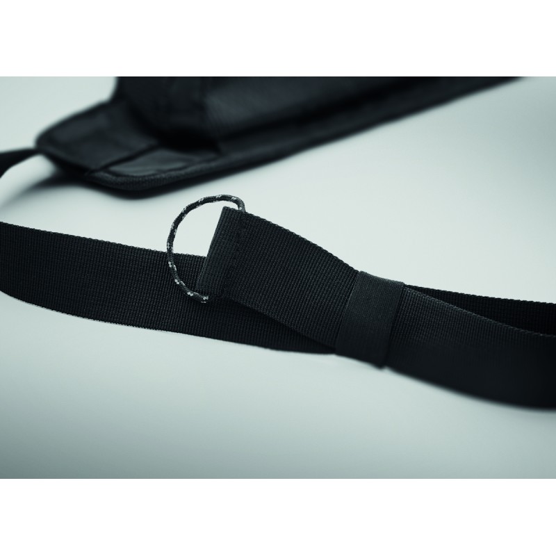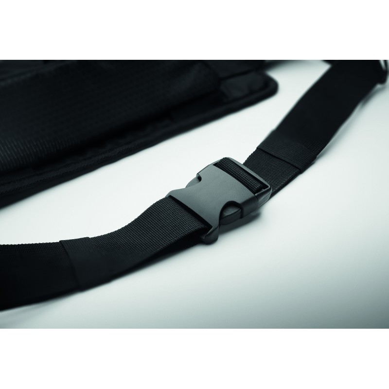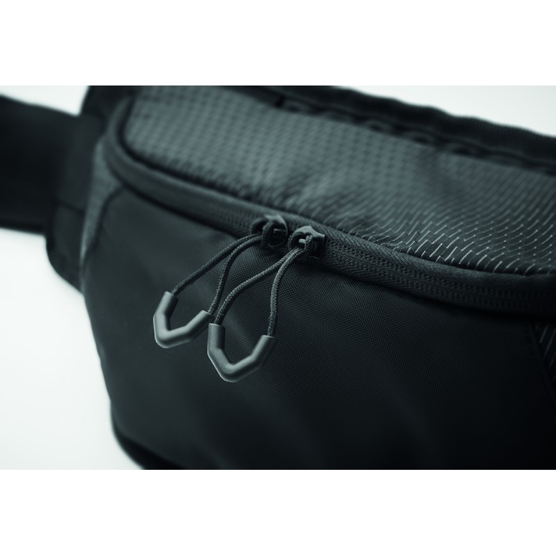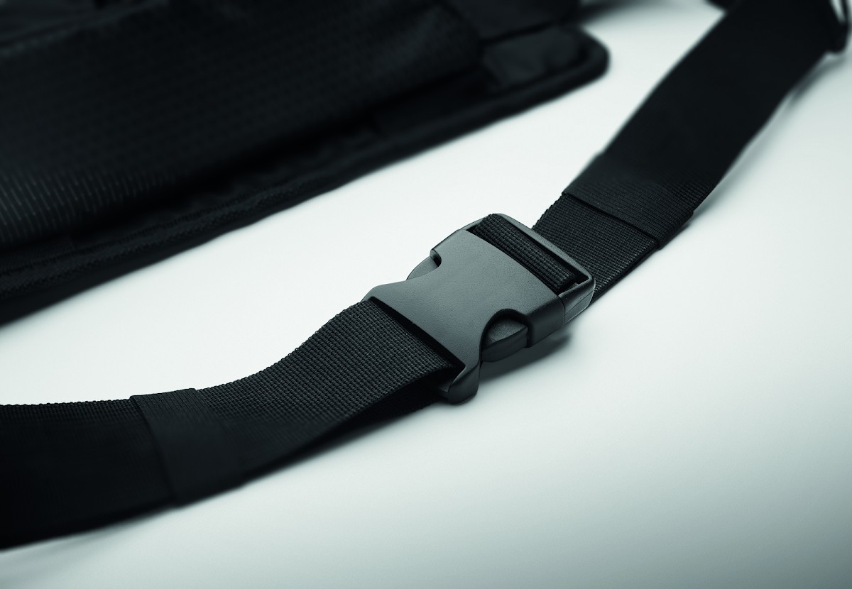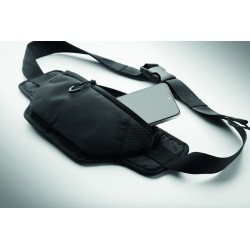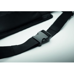 Sac banane en nylon 420D hydrofuge avec doublure en polyester 210D. Compartiment principal entièrement rembourré et grande ouverture zippée à double sens. Arrière ventilé.