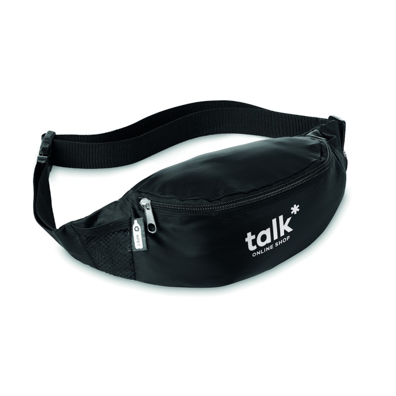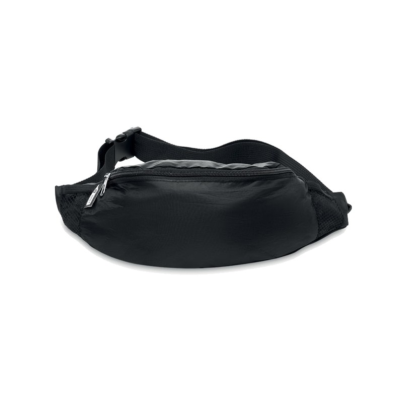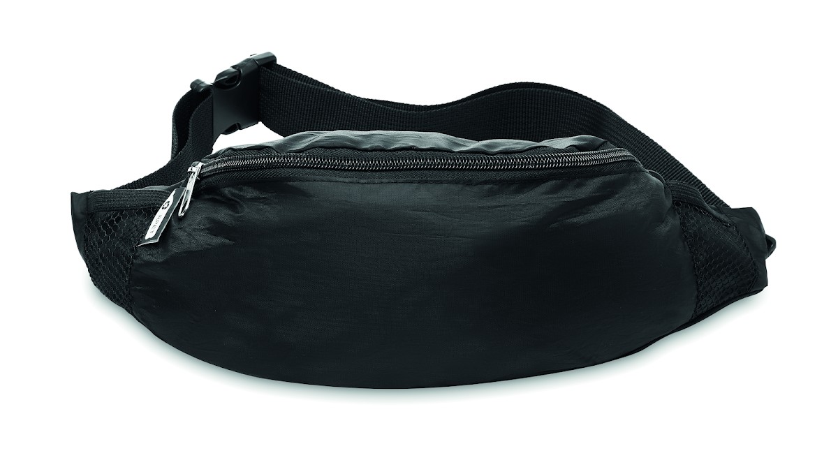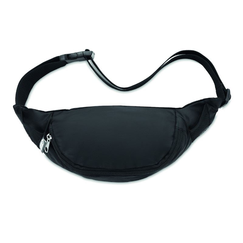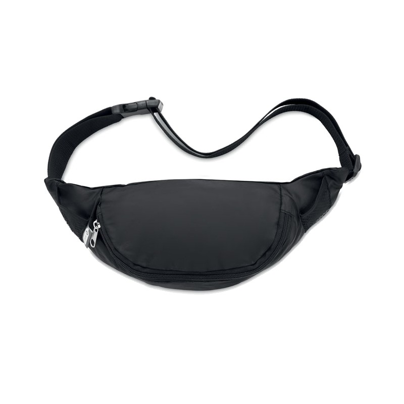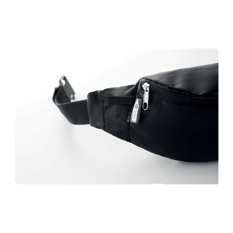 Sac banane en RPET 210D avec compartiment principal à fermeture éclair et sangle de taille réglable.