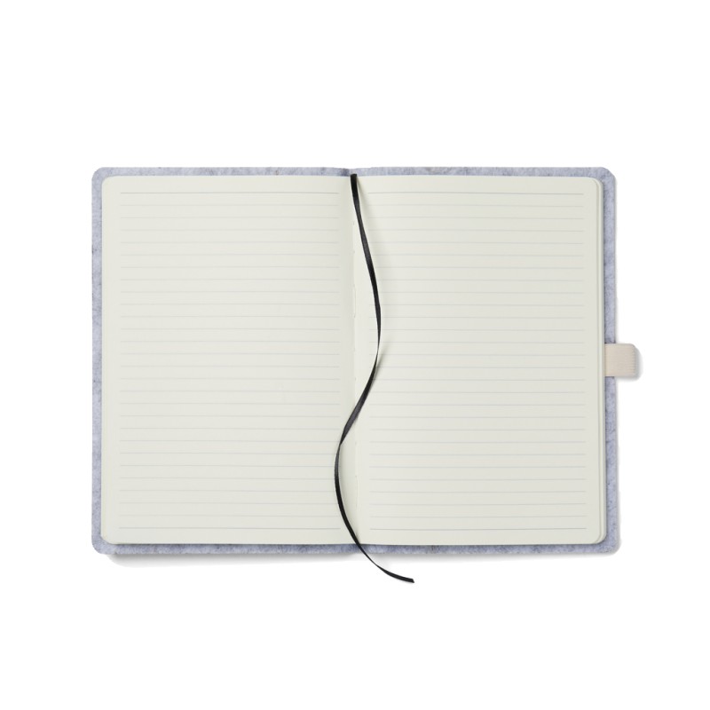 Cahier A5 élégamment fabriqué en feutre recyclé, avec un effet de mélange et un porte-stylo intégré. Contenant 80 feuilles ou 160 pages de papier recyclé 70 g/m², ses pages lignées sont idéales pour la prise de notes. Certifié par GRS (Global Recycled Standard), la certification GRS garantit que l'ensemble de la chaîne d'approvisionnement des matériaux recyclés est certifiée.Le contenu recyclé total est basé sur le poids total du produit.Ce produit contient 83 % de papier recyclé certifié GRS et 7 % de feutre recyclé certifié GRS.