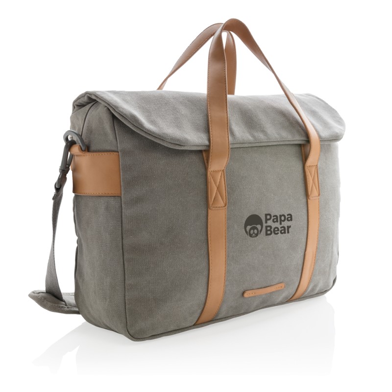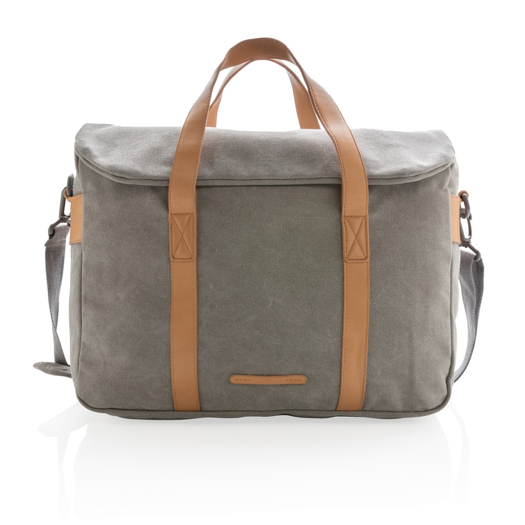 Sacoche pour ordinateur portable 15'' 600D et 1680D avec compartiment rembourré, bandoulière ajustable et passant à bagage. Poche frontale zippée et protection anti RFID. Sans PVC.