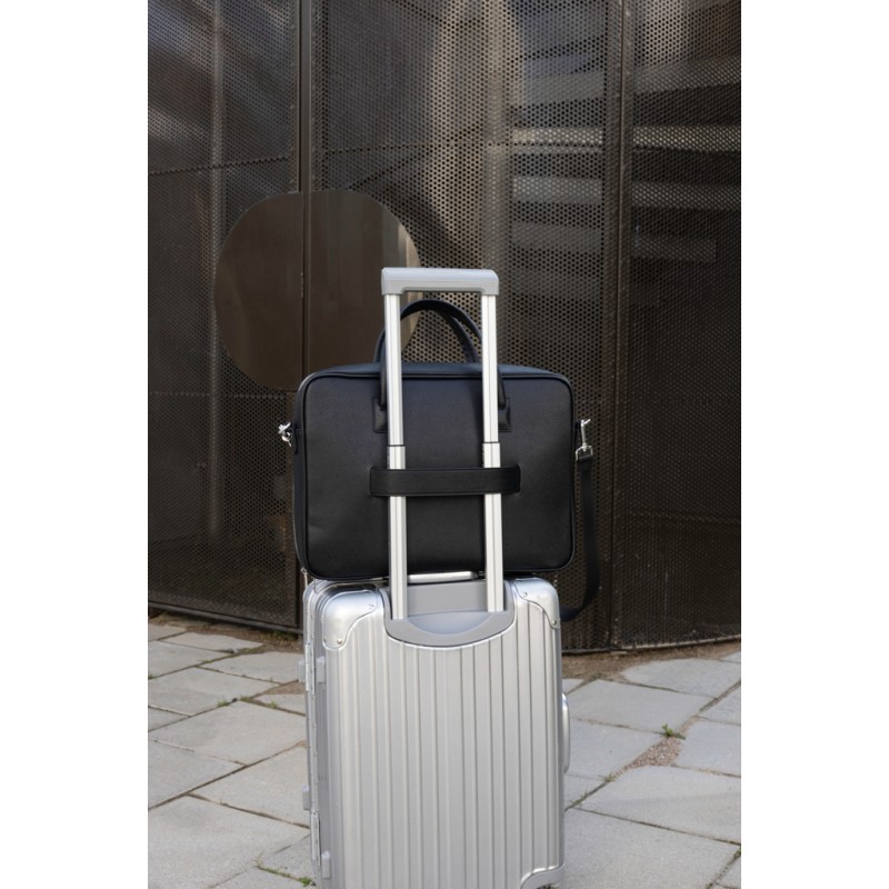 Cette élégante sacoche pour ordinateur portable est conçue pour protéger votre ordinateur tout en offrant des solutions pratiques pour vos besoins quotidiens. Elle est dotée d'une ouverture extra-large pour un accès facile. La sacoche est dotée de poignées robustes pour une prise en main confortable et d'une bandoulière réglable pour un transport souple et confortable, que vous vous rendiez au bureau, à une réunion ou que vous voyagiez. Convient à la plupart des ordinateurs portables jusqu'à 15 pouces. Remarque : les dimensions de l'écran peuvent varier de celles de l'ordinateur portable. Certifié par RCS (Recycled Claim Standard), la certification RCS garantit que l'ensemble de la chaîne d'approvisionnement en matériaux recyclés est certifiée. Le contenu recyclé total est basé sur le poids total du produit. Ce produit contient 39 % de polyester recyclé certifié RCS.