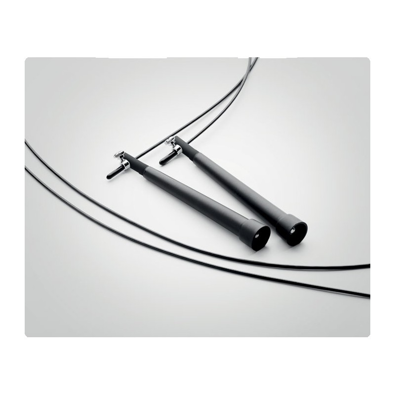 Corde à sauter (câble en acier avec revêtement en PVC) réglable dans une pochette de 210D RPET.