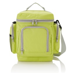 Sac isotherme pratique en polyester 600D avec multiples compartiments et bandoulière ajustable. Sans PVC.