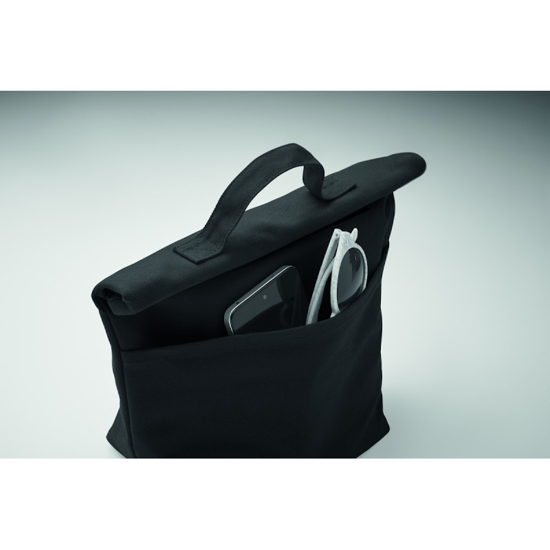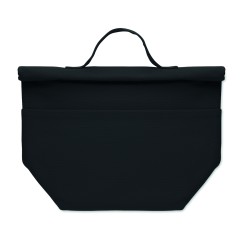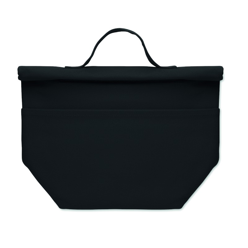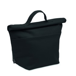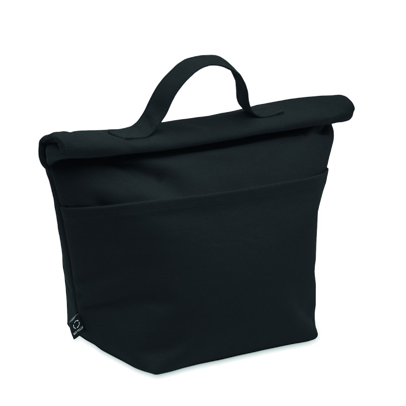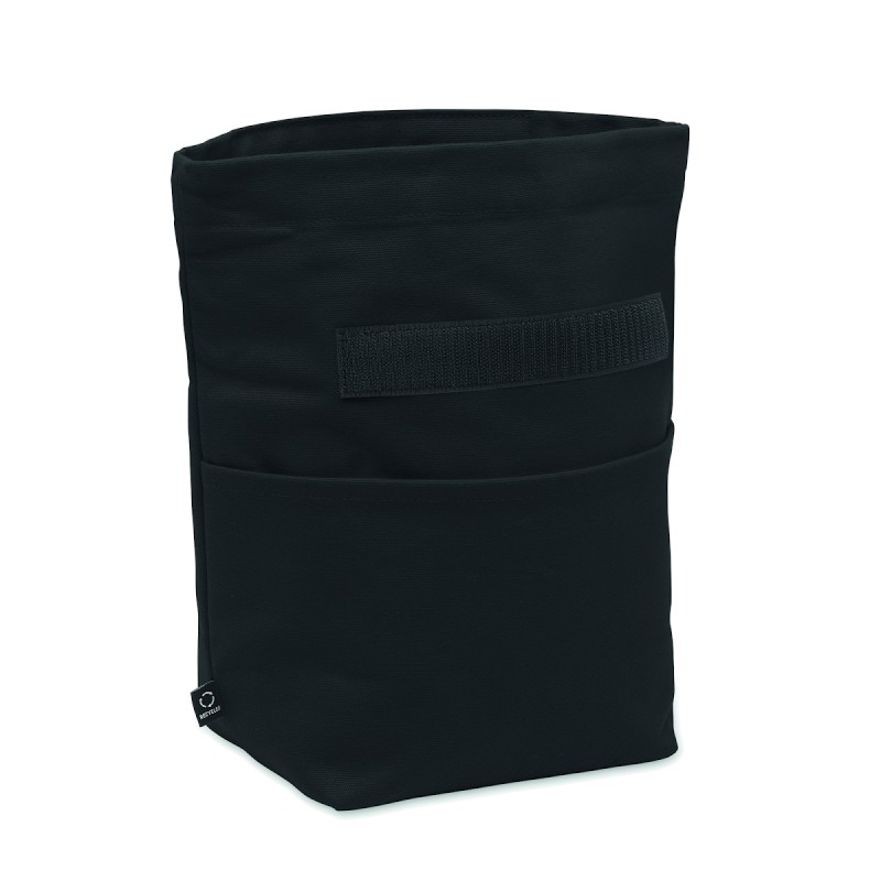Sac isotherme en 70% de coton recyclé et 30% de polyester recyclé , avec fermeture par bande auto-agrippante. Isolation : Mousse PE de 3 mm avec PEVA 12C.