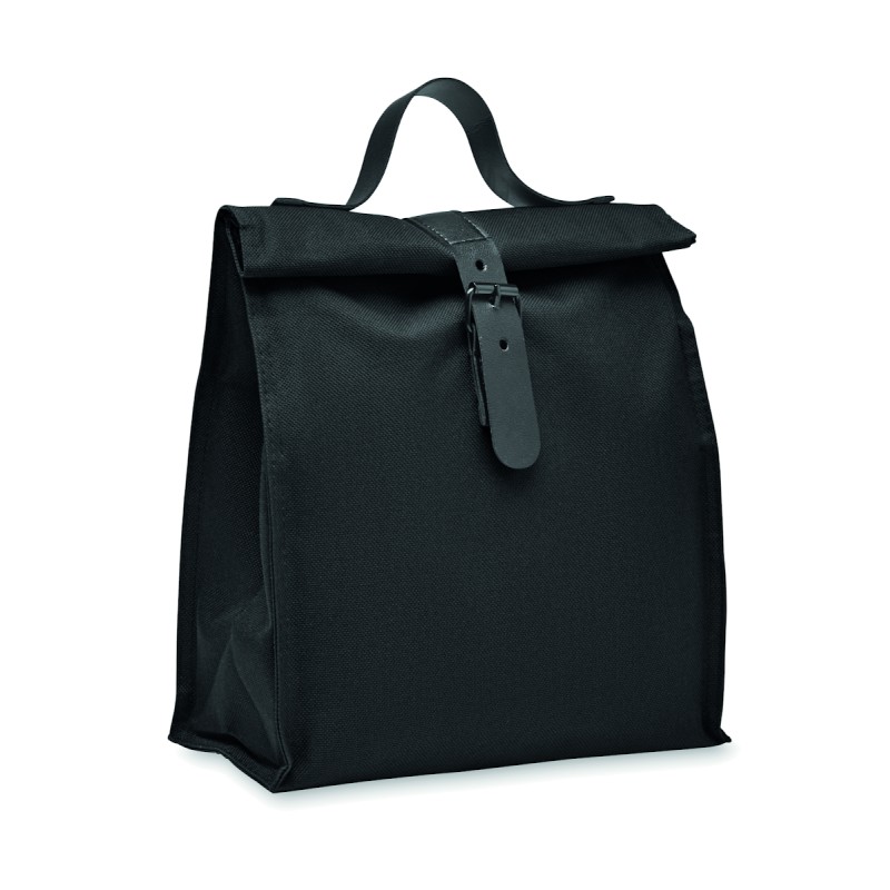 Sac isotherme enroulable en polyester 600D RPET avec poignée et fermeture en PU. Isolation : mousse PE 3 mm avec PEVA.