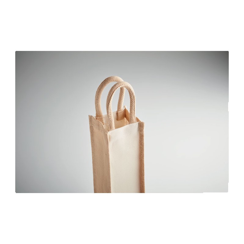 Sac pour une bouteille de vin en jute et toile 320 gr/m². Bouteille non founie