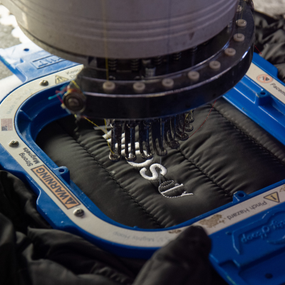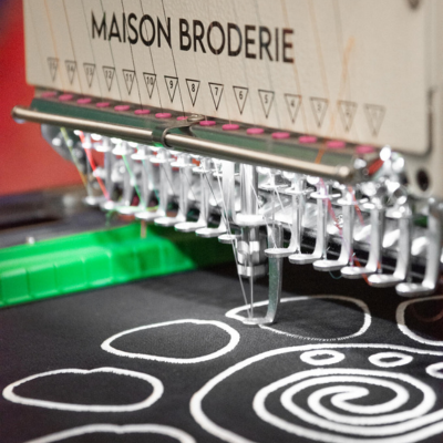 Technique de marquage textile la plus prestigieuse et la plus durable, la broderie sublime chaque création par un rendu premium, raffiné et intemporel.